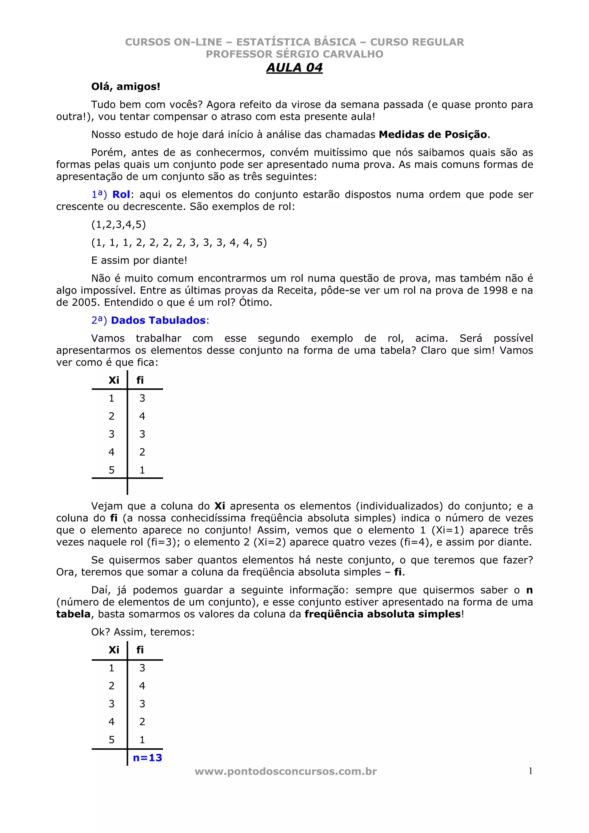 1) O documento apresenta as principais formas de apresentação de conjuntos de dados em provas de estatística: rol, dados tabulados, distribuição de frequências e histogramas.