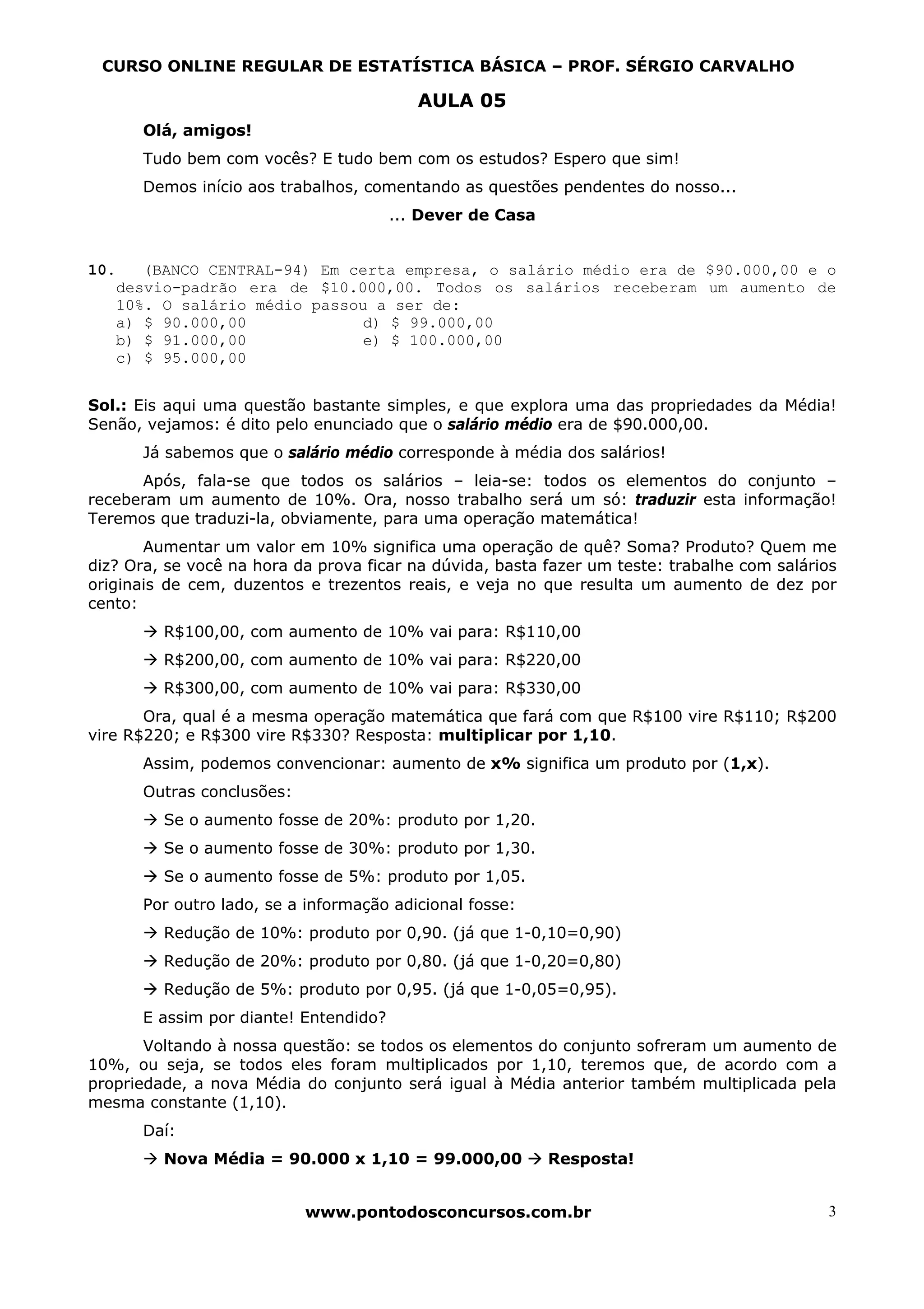 2) A aula discute como calcular a média salarial após um aumento de 10% nos salários.