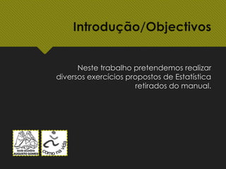Este documento apresenta os resultados de um trabalho de Estatística realizado por estudantes sobre exercícios propostos de Estatística retirados de um manual. Inclui uma tabela com os resultados de uma amostra sobre tipos de calçado usados por estudantes de uma escola.