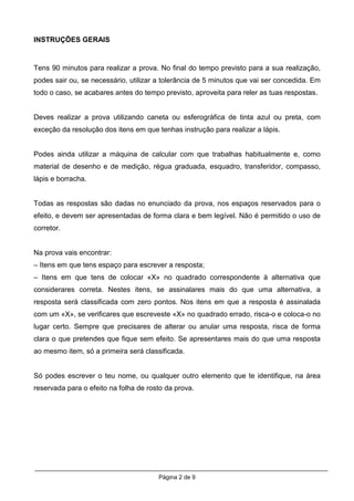 Este documento é uma prova de matemática para alunos do 6o ano. Contém 10 questões sobre estatística e probabilidade, cobrindo tópicos como tabelas de frequência, média, moda, diagramas e gráficos. As instruções orientam os alunos a completar as respostas nos espaços fornecidos dentro do prazo de 90 minutos.