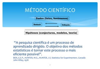 1) O método científico e como a estatística ajuda a tornar o processo de pesquisa mais eficiente;