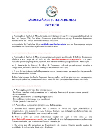 A Associação de Futebol de Mesa foi formada em 2013 em Garanhuns para congregar amigos interessados na prática do futebol de mesa. A associação organizará torneios periódicos e manterá um ranking dos botonistas em seu site. Os sócios terão direitos e deveres definidos no estatuto e poderão ser penalizados por infrações.