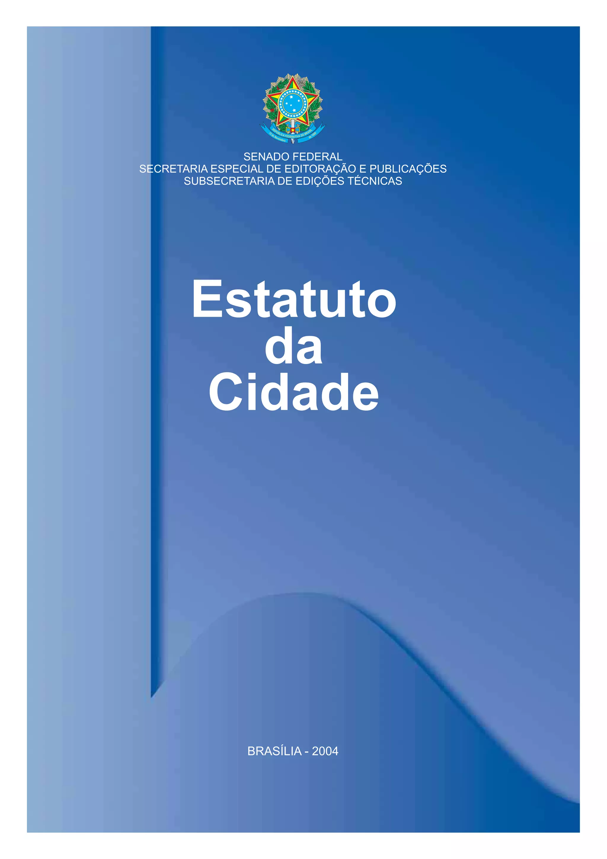 Este documento apresenta o Estatuto da Cidade, que regulamenta os artigos 182 e 183 da Constituição Federal. Ele estabelece diretrizes gerais para a política urbana brasileira, como garantir o direito às cidades sustentáveis e a gestão democrática das cidades. Também define instrumentos de política urbana como parcelamento compulsório, IPTU progressivo, desapropriação com títulos da dívida pública e usucapião especial de imóvel urbano.