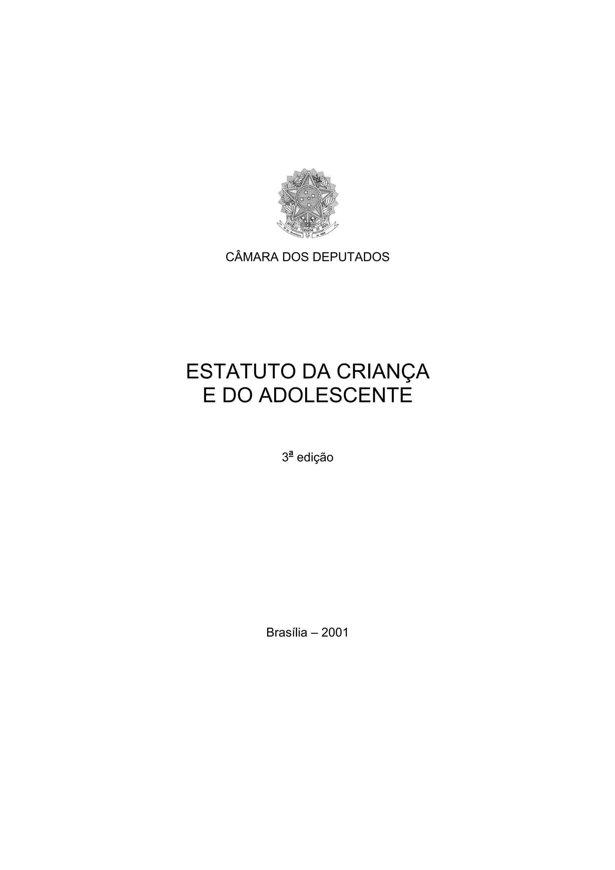 Este documento apresenta o Estatuto da Criança e do Adolescente, que protege e assegura os direitos de crianças e adolescentes no Brasil. O Estatuto define direitos fundamentais de crianças e adolescentes, medidas de proteção e atendimento, regras para apuração de atos infracionais de adolescentes, e punições para crimes e infrações relacionadas a violações desses direitos.