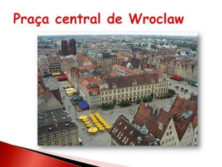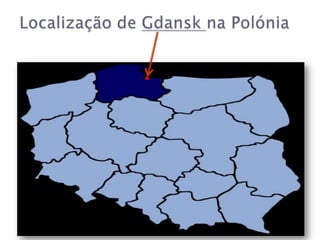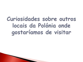 Este documento fornece informações sobre várias cidades polonesas, incluindo Varsóvia, Katowice, Gdansk, Wroclaw e Cracóvia. Ele descreve pontos turísticos populares em cada cidade, como a Igreja da Assunção da Virgem Maria em Gdansk e a Fonte de Wroclaw. O documento também discute aspectos da cultura polonesa, como expressões comuns e detalhes históricos sobre as cidades.