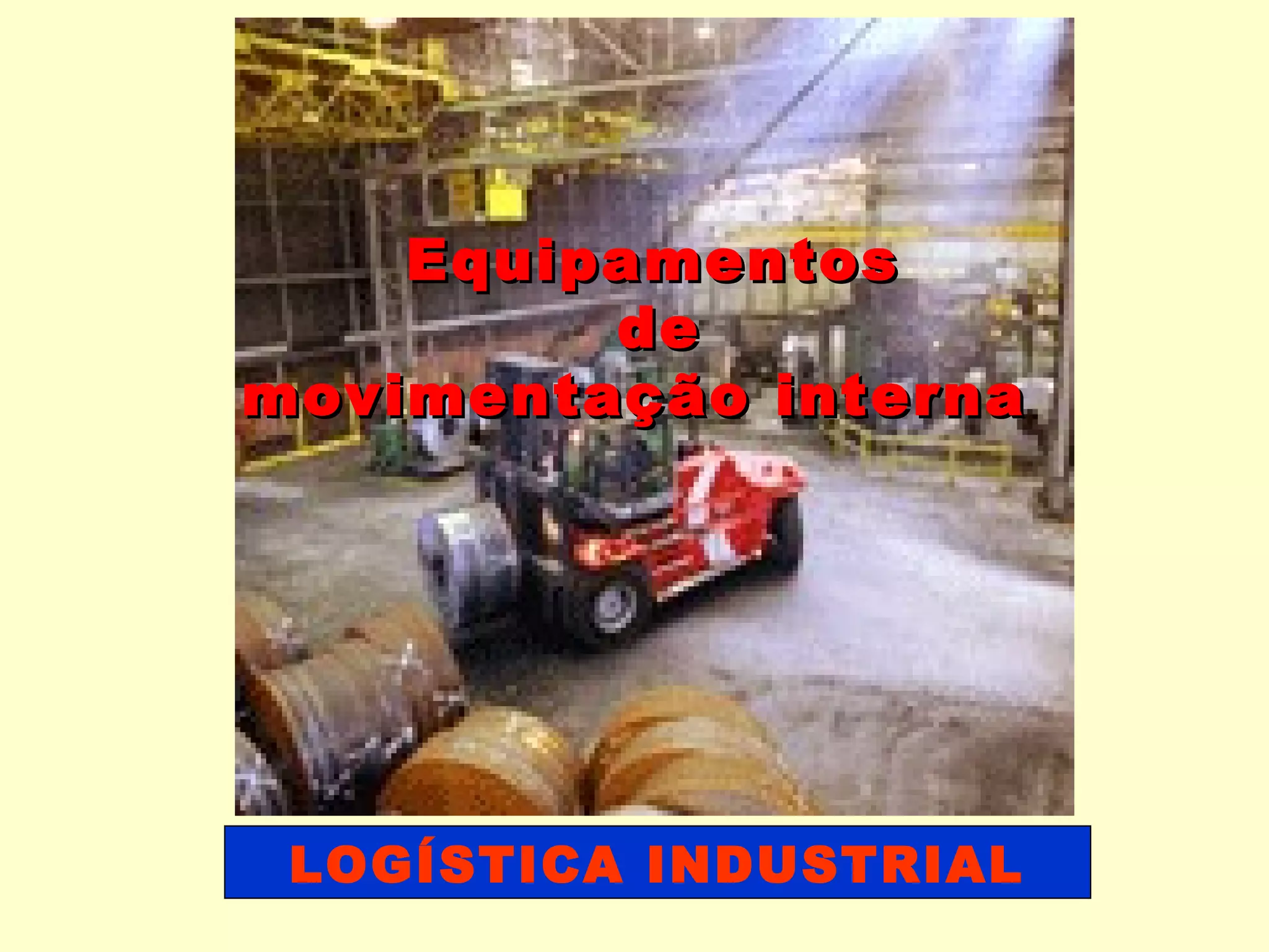 O documento descreve diferentes tipos de equipamentos de movimentação interna, incluindo pontes rolantes, empilhadeiras, guindastes, transportadores de correias e roletas, monotrilhos, monta-cargas, transElevadores, pórticos rolantes e paleteiras/carrinhos, destacando suas principais características e aplicações na logística industrial.