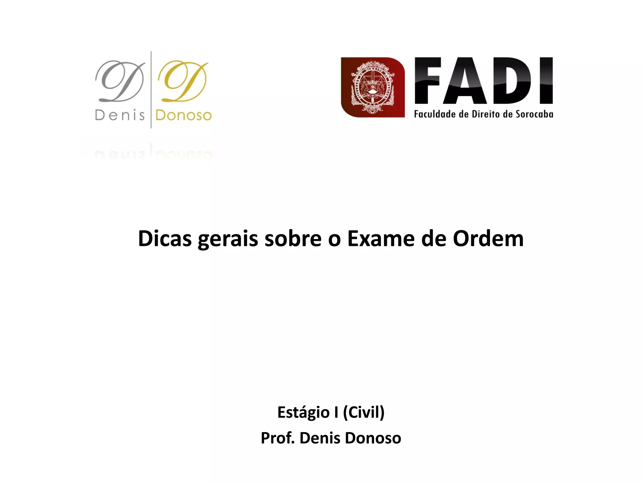 Este documento fornece informações gerais sobre o Exame de Ordem no Brasil, incluindo seus fundamentos legais, importância, formato, matérias cobradas e dicas para a prova. Resume os principais pontos como: 1) O Exame de Ordem é requisito para o exercício da advocacia no Brasil; 2) Consiste de duas fases, objetiva e prática, cobrindo diversas matérias jurídicas; 3) A prova prática avalia a habilidade de redação de peças processuais de acordo com a área jurí