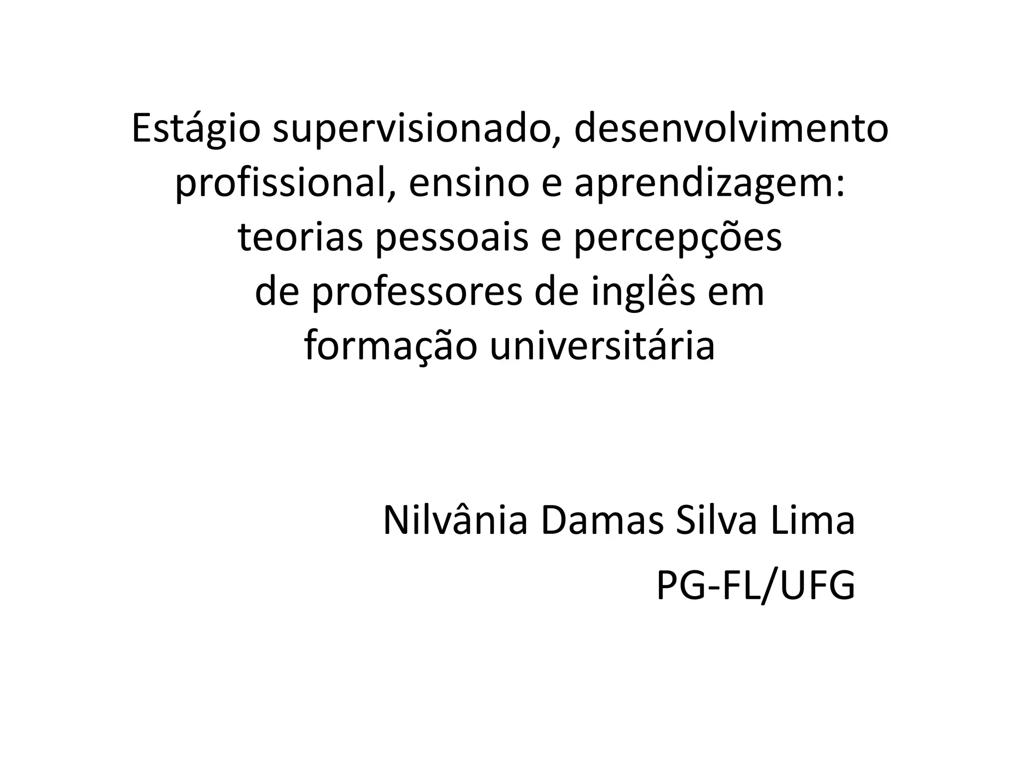 O documento analisa as percepções de professores de inglês em formação durante seu estágio supervisionado na UFG, destacando a importância da reflexão e das experiências práticas na formação profissional. Os participantes identificaram desafios e aprendizados significativos com o desenvolvimento de suas práticas pedagógicas, enfatizando a relevância das professoras-mentoras e a necessidade de um formato mais adequado para o estágio. A relação entre ensino e aprendizagem de inglês foi discutida como um meio de acesso a outras culturas e possibilidades profissionais.