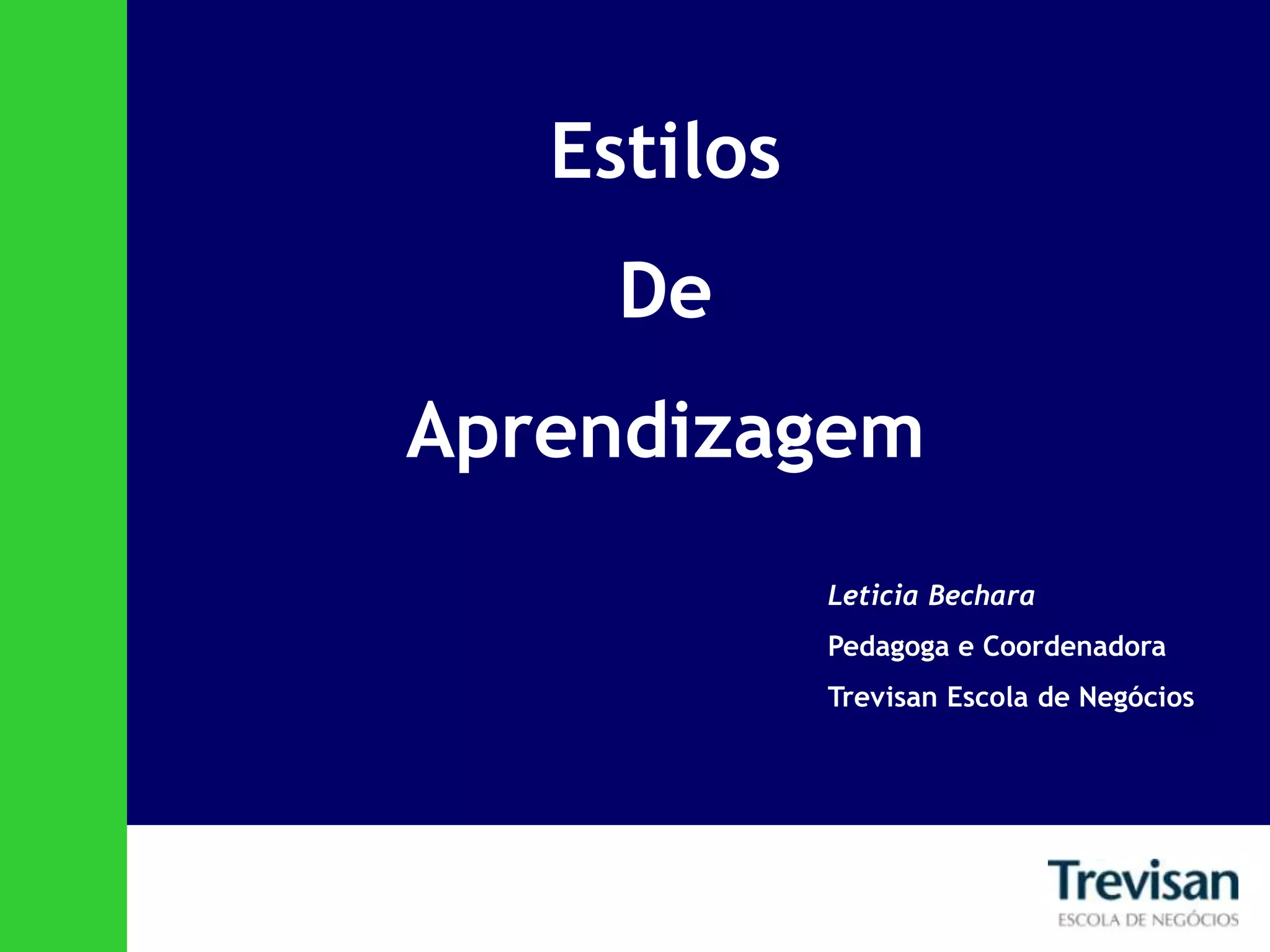 Este documento discute os diferentes estilos de aprendizagem e como eles afetam a educação. Ele descreve quatro estilos principais - interativo, analítico, pragmático e dinâmico - e como cada um prefere aprender de maneiras diferentes. Também enfatiza que os educadores precisam entender esses diferentes estilos para ensinar de forma mais eficaz e inclusiva.