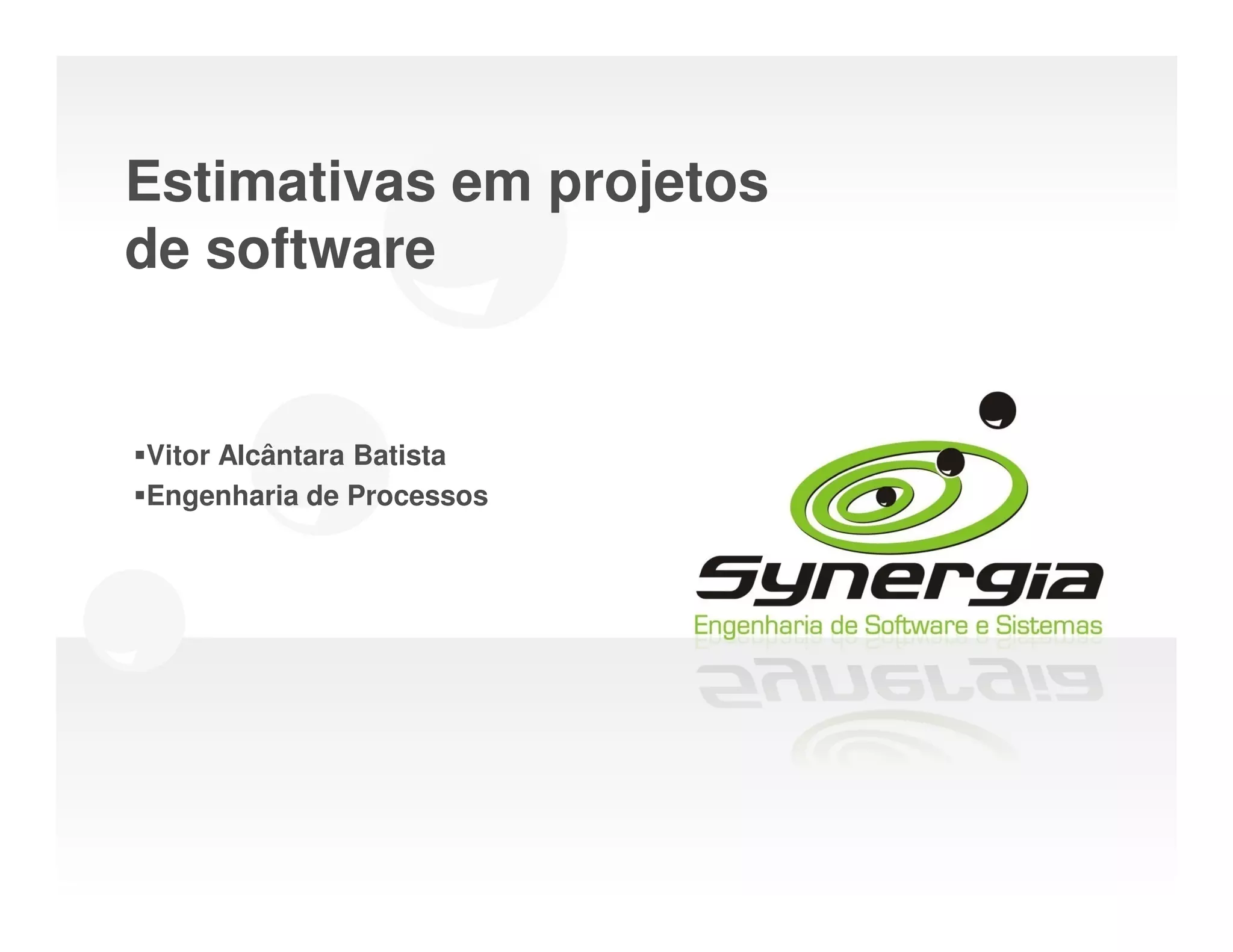 1. O documento discute conceitos e técnicas relacionadas a estimativas de projetos de software.