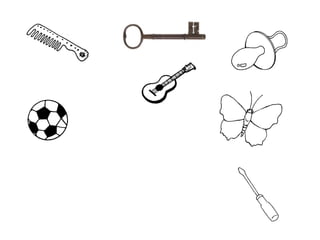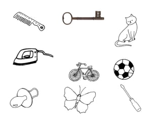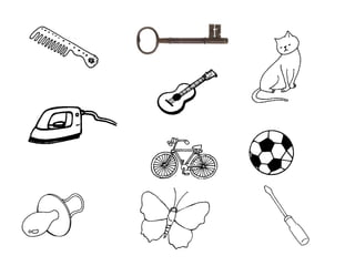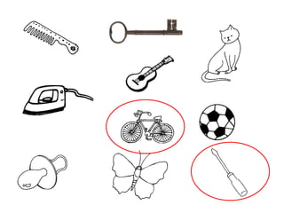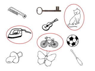 O documento apresenta uma série de slides com palavras ou objetos para memorizar e perguntas sobre os mesmos, testando a memória do leitor.