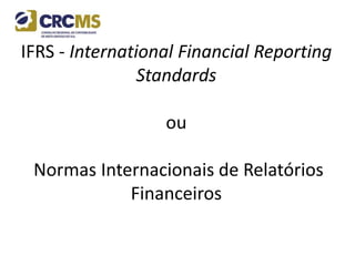 O documento discute a estrutura conceitual e normas internacionais de relatórios financeiros (IFRS). Apresenta os objetivos e princípios das IFRS, como a qualidade da informação para investidores e credores. Também explica como empresas brasileiras anteciparam a adoção das IFRS de forma voluntária.