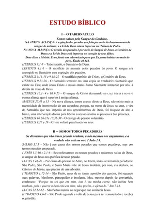 1) A expiação dos pecados na Antiga e Nova Aliança, o Tabernáculo e o sacrifício de Jesus;