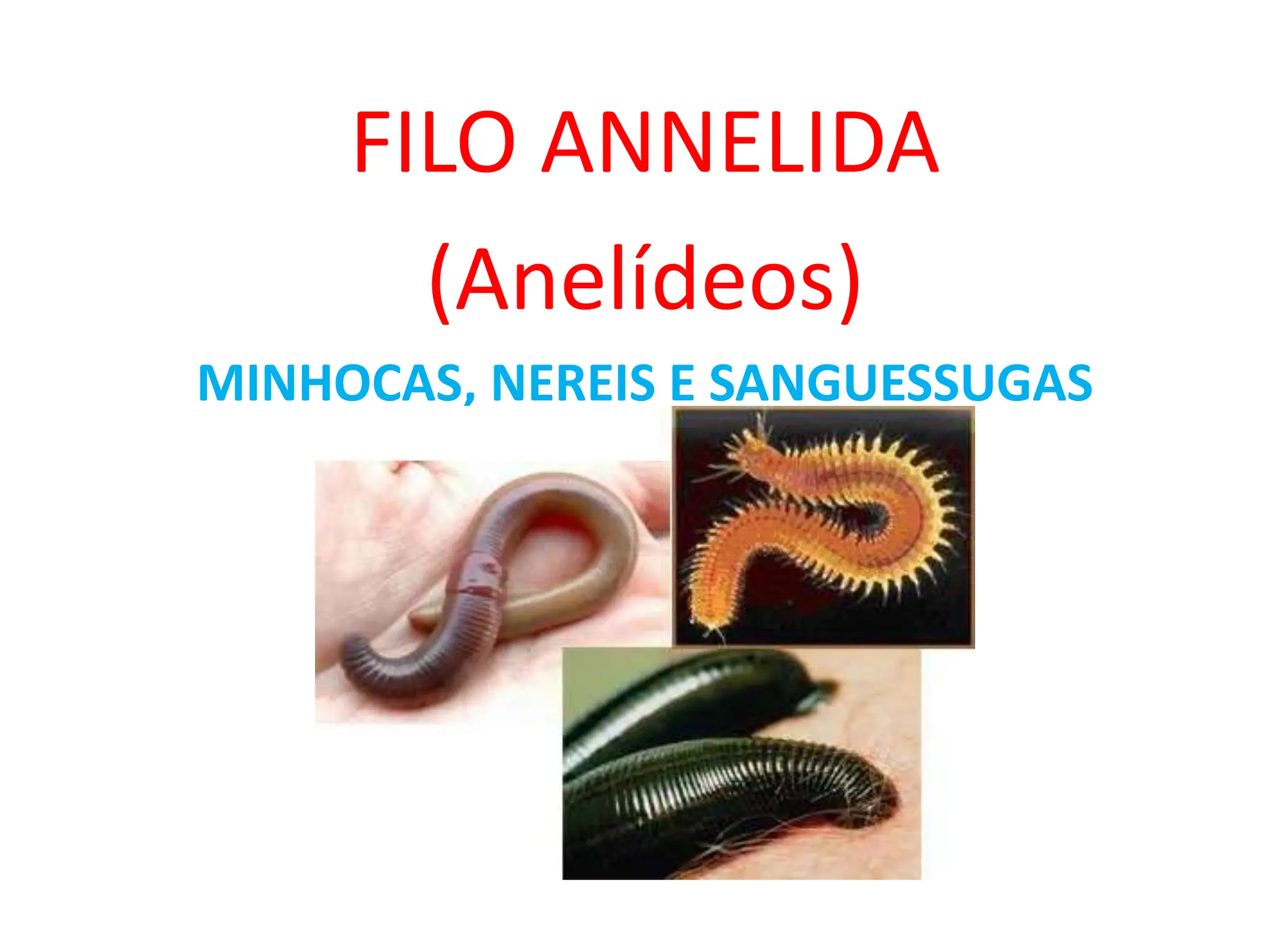 Os anelídeos são vermes cilíndricos com corpo segmentado, vivendo em ambientes aquáticos e terrestres. Eles são classificados em três classes: Polychaeta, Oligochaeta e Hirudinea, apresentando variações em morfologia e reprodução. A classe Oligochaeta, que inclui minhocas, possui um sistema cardiovascular fechado e respiração cutânea, enquanto a classe Hirudinea, que engloba sanguessugas, destaca-se pela presença de ventosas e alimentação hematófaga.