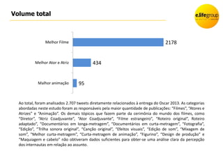 O filme "Argo" foi o mais comentado nas redes sociais durante a semana que antecedeu o Oscar 2013, seguido de "O lado bom da vida". A animação "Detona Ralph!" também gerou discussão, impulsionada pela participação da dubladora Mari Moon. Os artistas indicados dividiram opiniões entre apoiadores e críticos.