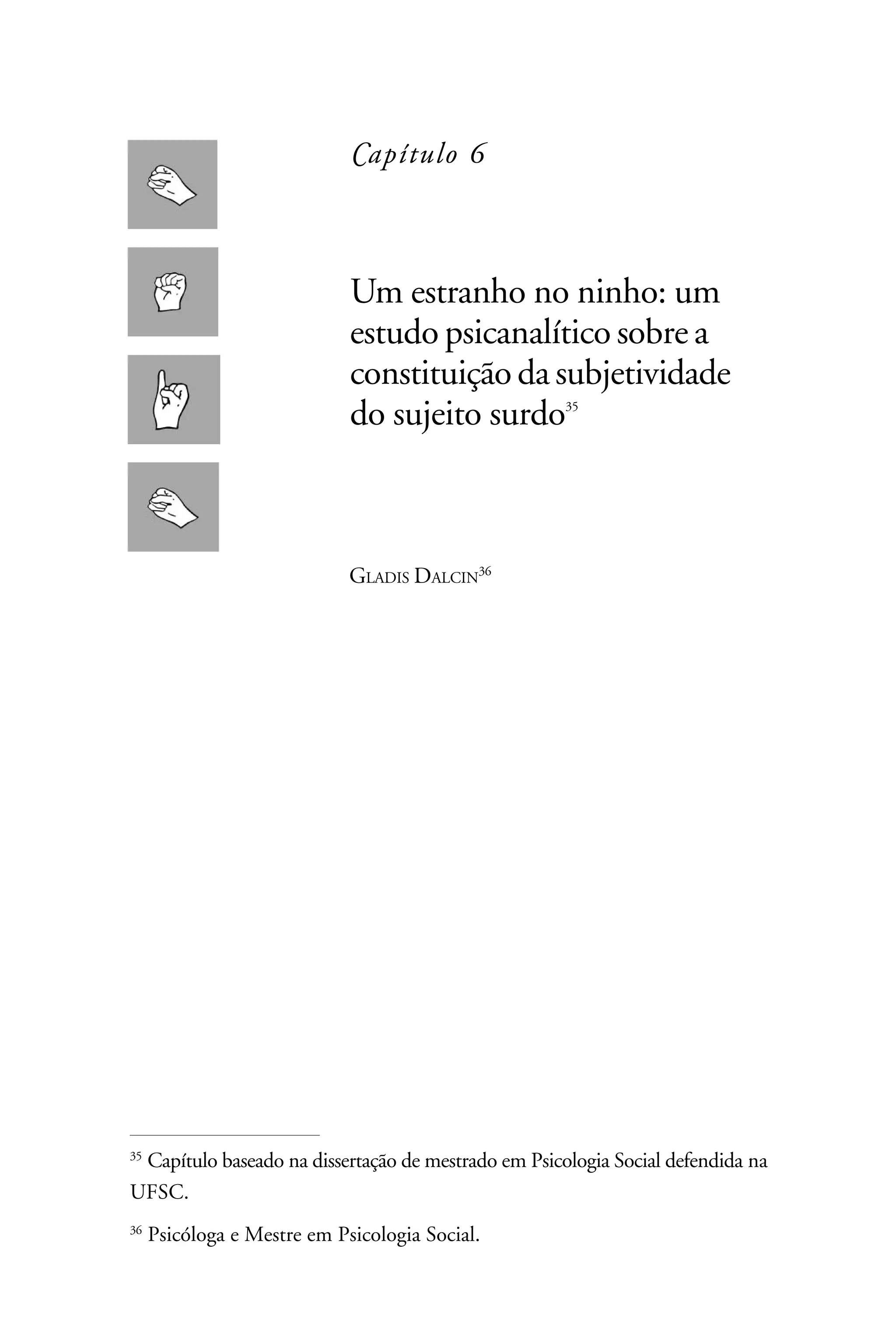 O estudo analisa a constituição da subjetividade de surdos natos que têm pais ouvintes, destacando como a falta de contato com a língua de sinais impacta sua identidade e integração cultural. A pesquisa revela que os surdos, antes de se relacionarem com a comunidade surda, vivenciam um isolamento e uma alienação significativos, que se transformam em um sentido de pertencimento e alegria após o aprendizado da língua de sinais. Utilizando uma abordagem psicanalítica, o trabalho enfatiza a importância da experiência simbólica e do convívio humano para a humanização e desenvolvimento subjetivo dos surdos.