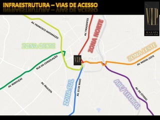 A área de Bela Vista e Consolação, com 4,4 km² e uma população de 70.000 habitantes permanentes e 3 milhões flutuantes, destaca-se pelo comércio vibrante e infraestrutura de transporte público. A região abriga inúmeras universidades, atraindo alunos e gerando demanda por imóveis de pequeno porte, além de oferecer uma rica variedade de restaurantes, hotéis e teatros. A valorização do local é impulsionada pela proximidade das estações de metrô e a intensa vida noturna.