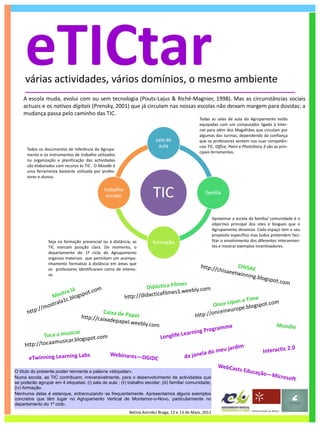 (1) As TIC são amplamente utilizadas no Agrupamento Vertical de Montemor-o-Novo, tanto na sala de aula quanto no trabalho escolar e na formação de professores; (2) Todas as salas de aula têm computadores com acesso à Internet e ferramentas como o Moodle são usadas frequentemente; (3) Sites e blogs são usados para aproximar a escola da comunidade local e compartilhar exemplos incentivadores.