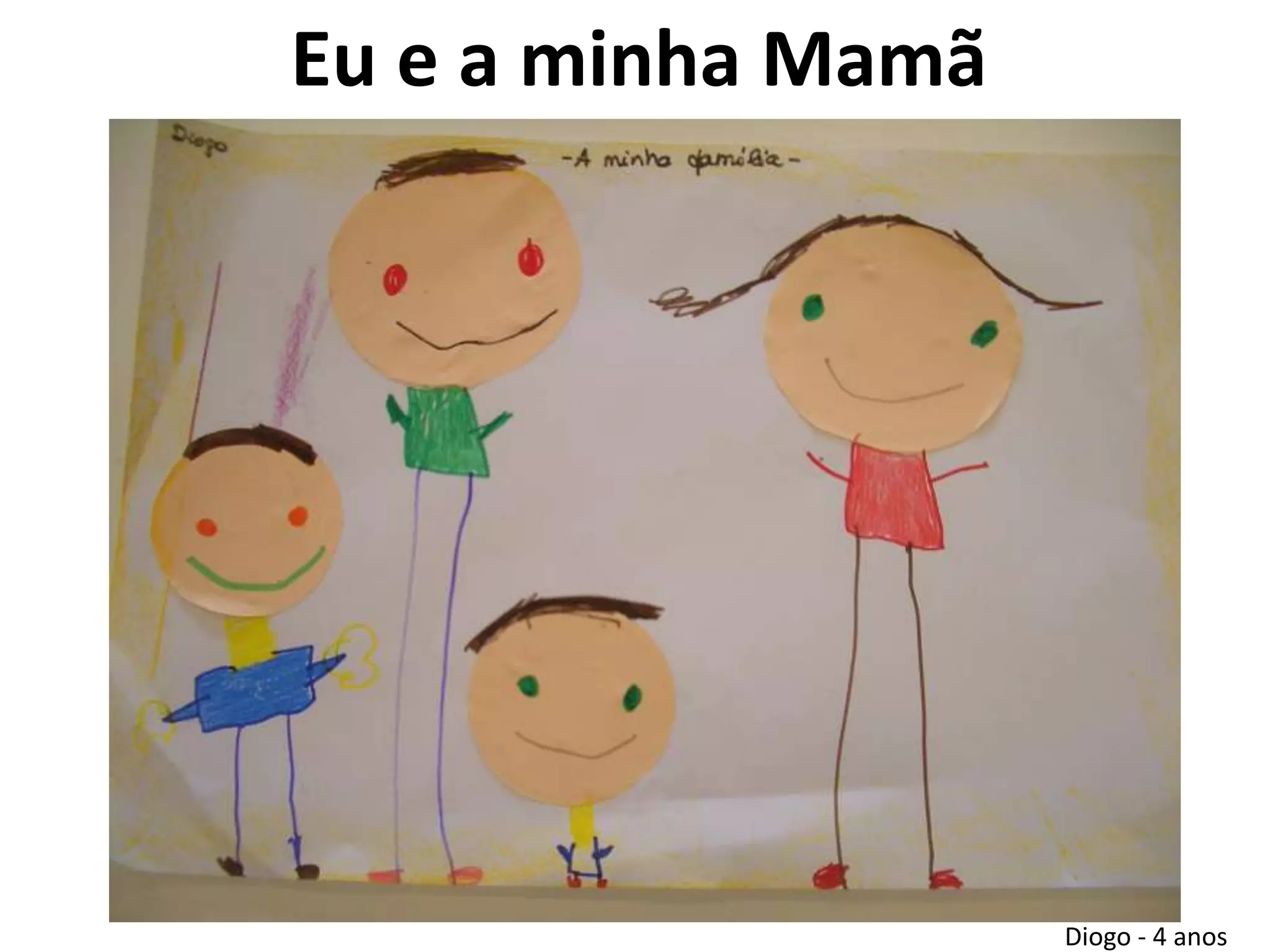 A minha mãeé Isa. É minha amiga e gosta de mim.Mãe tu és muito linda. Tens o cabelo liso e castanho.(Gustavo – 3 anos)