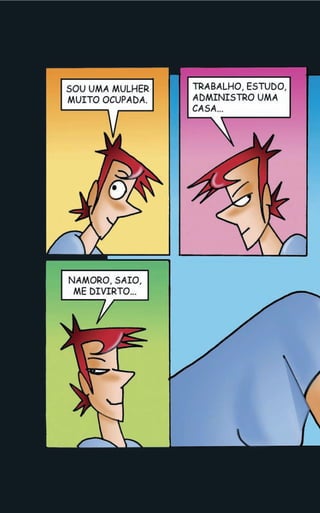 O documento fornece dicas e informações sobre saúde, beleza, sexualidade e direitos das mulheres. Aborda tópicos como cuidados com o corpo e a pele, maquiagem caseira, métodos contraceptivos, doenças sexualmente transmissíveis, gravidez, menopausa e violência contra a mulher.