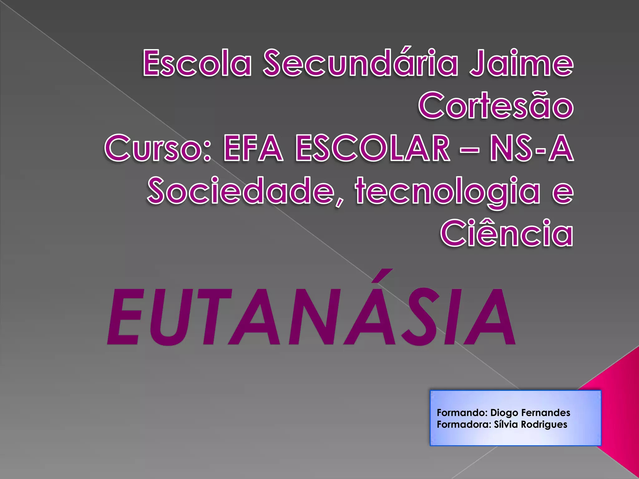 Este documento discute os tipos de eutanásia, incluindo eutanásia voluntária, não voluntária e involuntária. Também aborda os métodos de administração da eutanásia ativa e passiva, além de apresentar o caso real de Terri Schiavo e argumentos a favor e contra a eutanásia. O autor expressa sua opinião pessoal de que preferiria a morte a um sofrimento prolongado e apoia a eutanásia passiva.