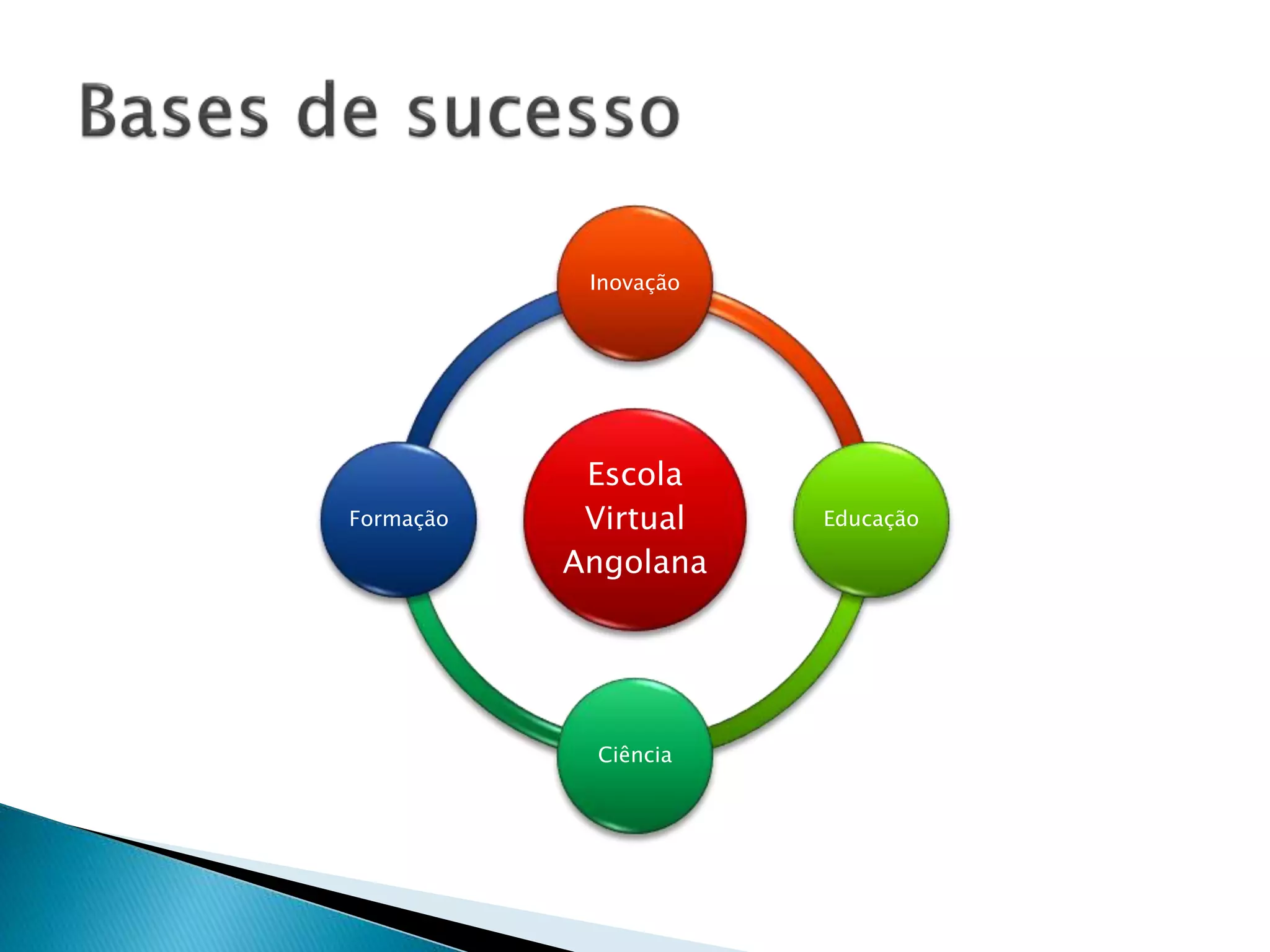A Escola Virtual Angolana oferece educação online flexível utilizando a plataforma Moodle adaptada ao contexto angolano. Sua equipe multidisciplinar e experiente fornece formação profissional online e presencial com diversos recursos tecnológicos. O foco é capacitar professores e formadores com conhecimento científico e pedagógico atualizados.