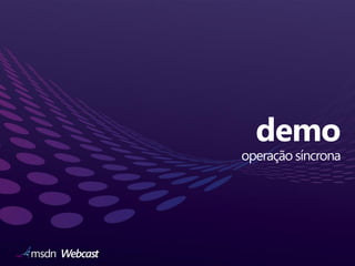 O documento aborda a implementação de operações assíncronas em programação, incluindo invocações simples e múltiplas. Ele descreve o uso de delegates e eventos para gerenciar o estado de operações assíncronas, bem como propriedades relacionadas a cancelamentos e erros. Links são fornecidos para recursos adicionais sobre o padrão assíncrono baseado em eventos.
