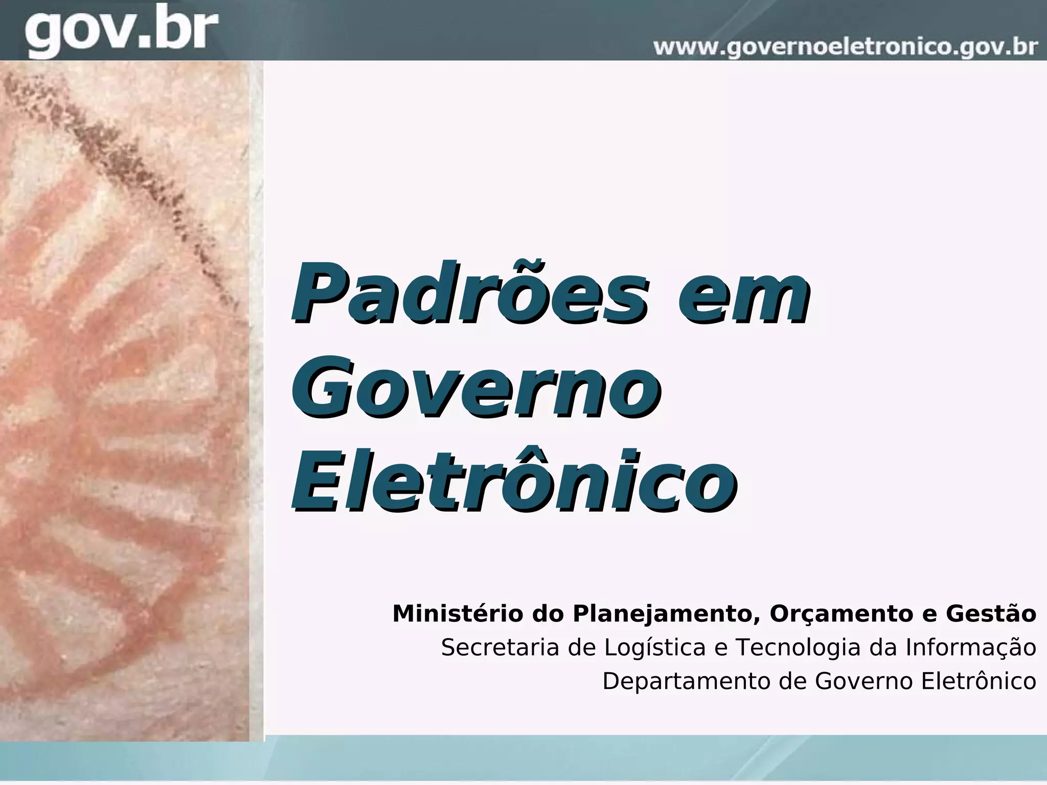 O documento apresenta padrões para governo eletrônico no Brasil, abordando a acessibilidade, uso da internet pelas diferentes classes sociais e as dificuldades de interação com serviços governamentais online. Destaca-se a importância de criar uma web acessível a todos, com dados governamentais abertos e a implementação de recomendações para melhorar a usabilidade e a comunicação entre o governo e os cidadãos. Também é mencionado que 98% das páginas do governo não são acessíveis e que há uma necessidade urgente de ajustes e qualificação na apresentação de serviços eletrônicos.