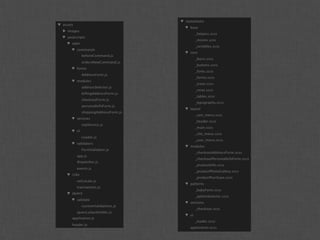 O documento discute arquitetura de front-end em aplicações de larga escala. É destacado que tais aplicações requerem organização, modularização e otimização de código. O HTML, CSS e JavaScript devem ser estruturados em módulos independentes para facilitar a manutenção.