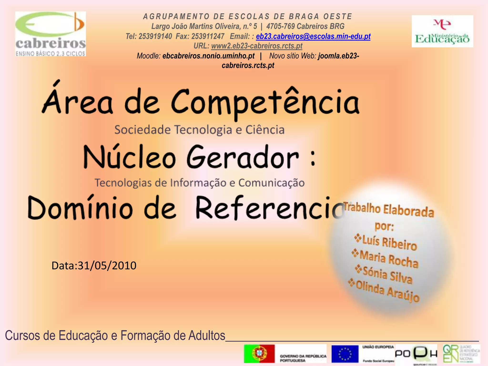Área de CompetênciaSociedadeTecnologia e CiênciaNúcleo Gerador : Tecnologias de Informação e Comunicação Domínio de Referencia: 2Trabalho Elaborada por:Luís Ribeiro