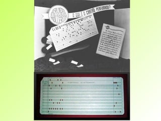 O documento descreve a evolução dos computadores ao longo dos séculos, desde o ábaco e a régua de cálculo até os primeiros computadores mecânicos e eletrônicos como o ENIAC e o Mark I. Também discute os avanços nas capacidades de armazenamento de dados, desde os primeiros discos rígidos de vários quilogramas e dezenas de milhares de dólares até os cartões de memória e discos utilizados nos PCs modernos.