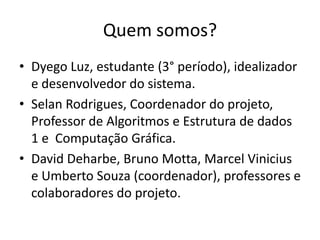 O documento apresenta o projeto 'ecossistema web', idealizado por Dyego Luz e coordenado por Selan Rodrigues, com o objetivo de estimular a formação computacional e reduzir a evasão de alunos. As soluções propostas incluem facilitar o acesso à informação, promover interação aluno-professor e oferecer apoio na implementação de projetos e criação de portfólios. O projeto convida a participação ativa dos alunos para contribuir com melhorias na formação profissional.