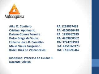 Disciplina: Processo do Cuidar III
