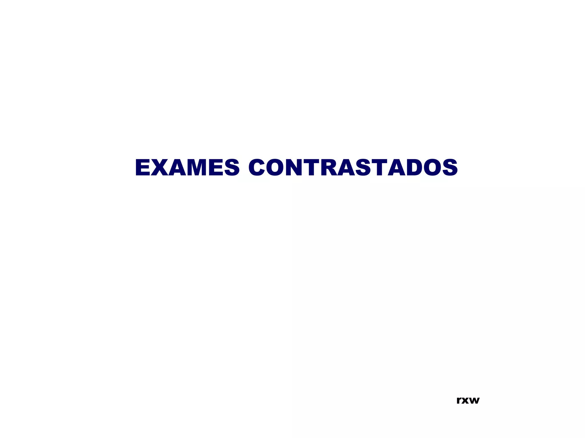 O documento fornece informações sobre exames de contraste do esôfago, estômago e intestino grosso, incluindo esofagografia, seriografia gastrointestinal alta (SEED ou REED) e enema baritado. Descreve os objetivos, indicações, procedimentos e observações importantes de cada exame.
