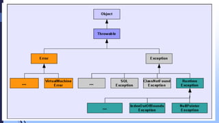 1) O documento discute exceções em programação Java, incluindo definições de exceção, tipos comuns de exceções, e a importância do tratamento de exceções.