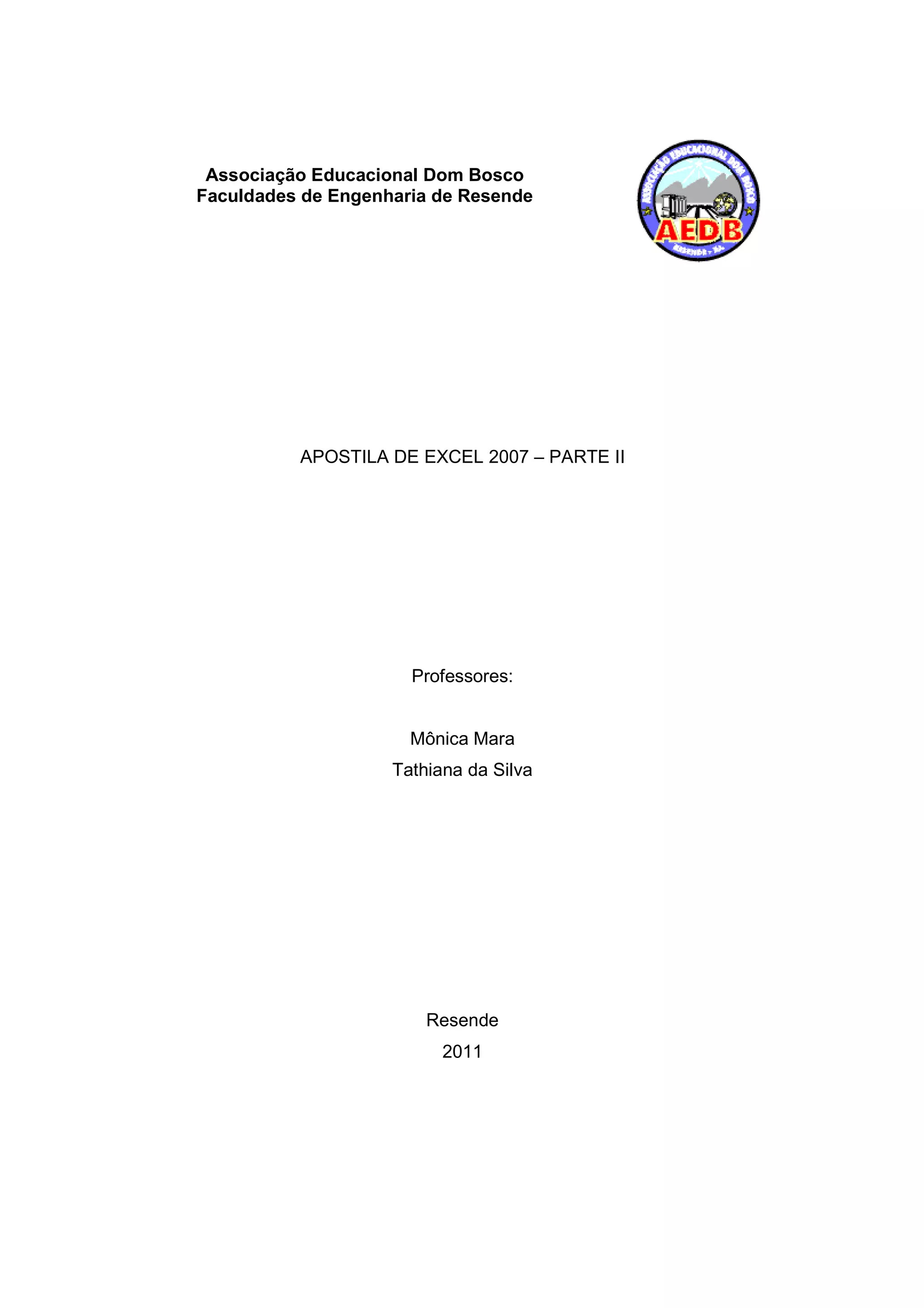 1) O documento apresenta uma apostila sobre recursos avançados do Excel 2007, incluindo funções PROCV e PROCH, criação de formulários, tabelas e gráficos dinâmicos, e macros.