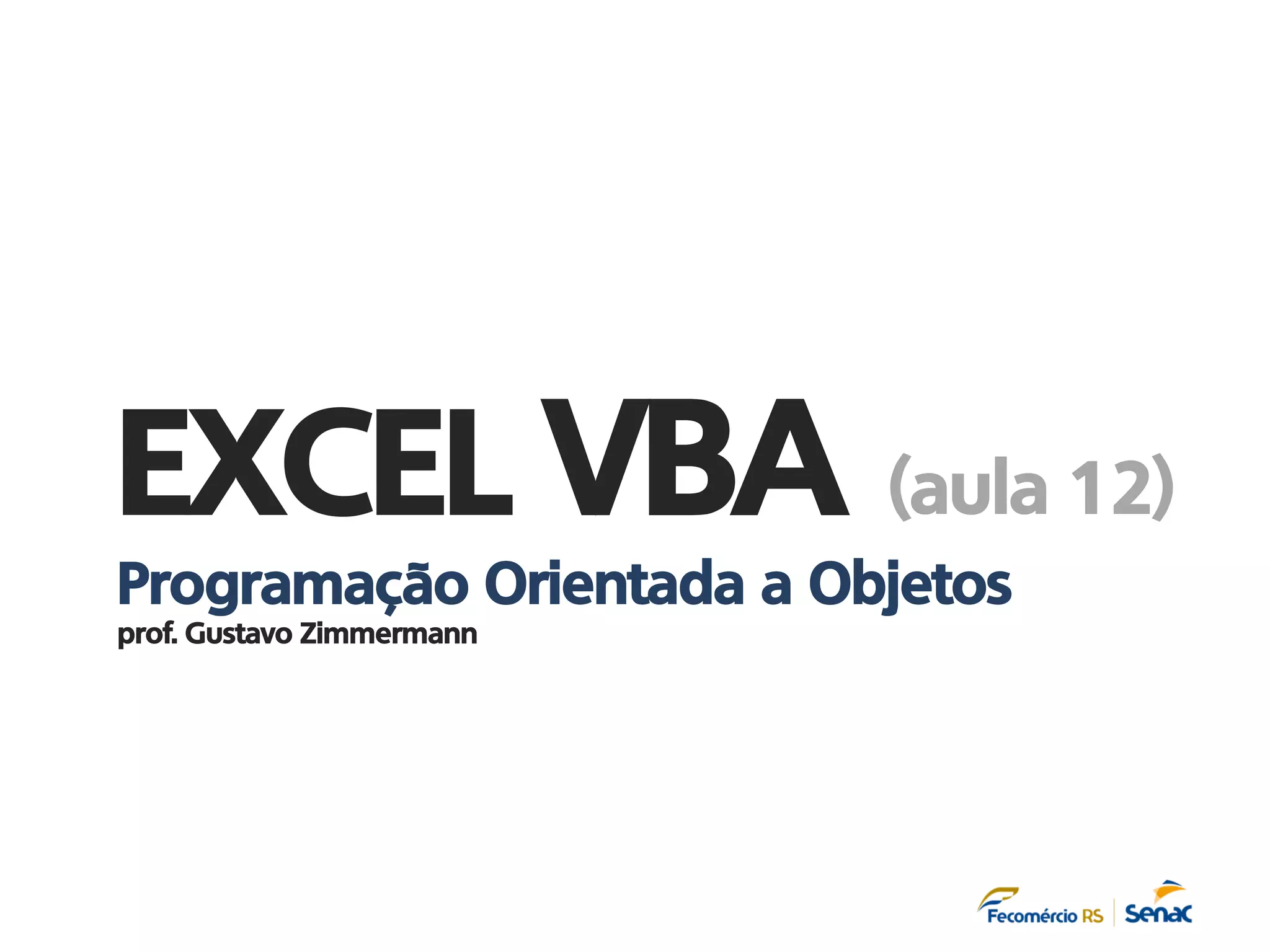 O documento discute programação orientada a objetos em VBA para Excel, definindo objetos, propriedades e métodos e como manipular objetos para modificar propriedades e executar tarefas. Inclui um exemplo de como definir e preencher uma matriz bidimensional em VBA.