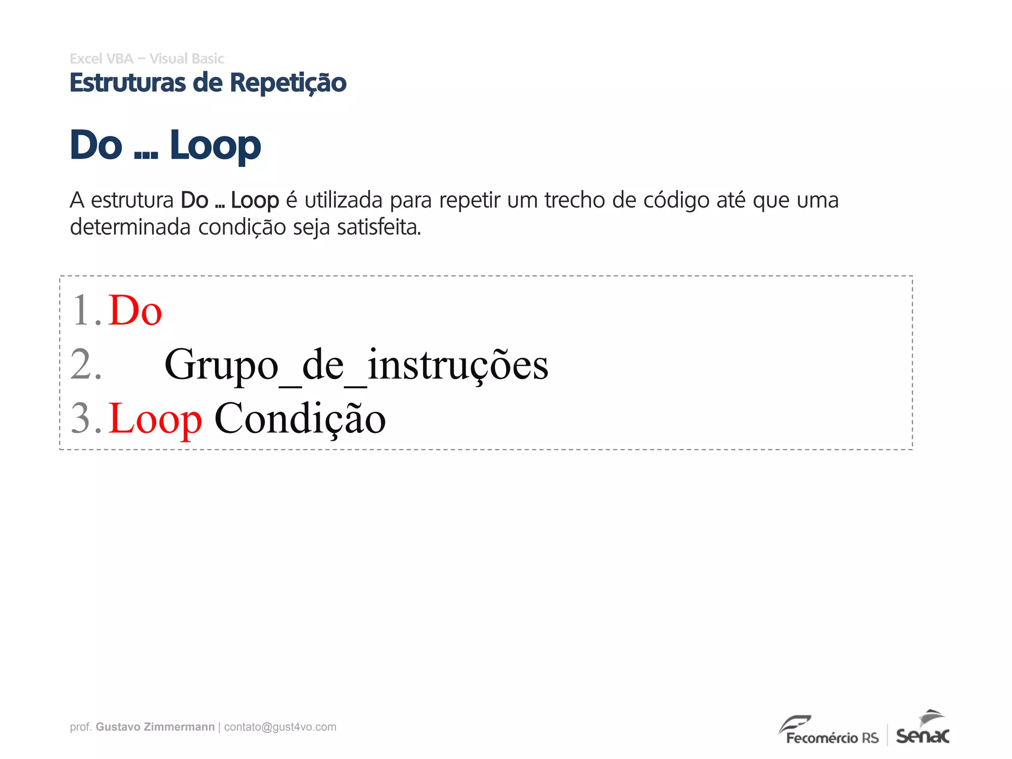 A estrutura Do ... Loop é utilizada para repetir um trecho de código até que uma