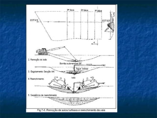 O documento discute os serviços preliminares necessários para a execução de terraplanagem, incluindo a instalação do canteiro de obras e seus componentes, como escritório, almoxarifado e oficinas. Também aborda equipamentos e técnicas para limpeza da faixa de ocupação, operação de máquinas de terraplanagem como bulldozer, e métodos para carregamento e transporte de materiais.