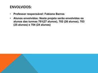 O documento descreve um projeto escolar no qual os alunos deveriam enviar um texto sobre tipos de tipos metálicos móveis de Gutemberg por e-mail. No entanto, apenas 8,5% dos alunos enviaram o trabalho, ficando muito abaixo da meta de 80%. O professor conclui que os alunos não estão acostumados a usar e-mail para disseminar conhecimento.