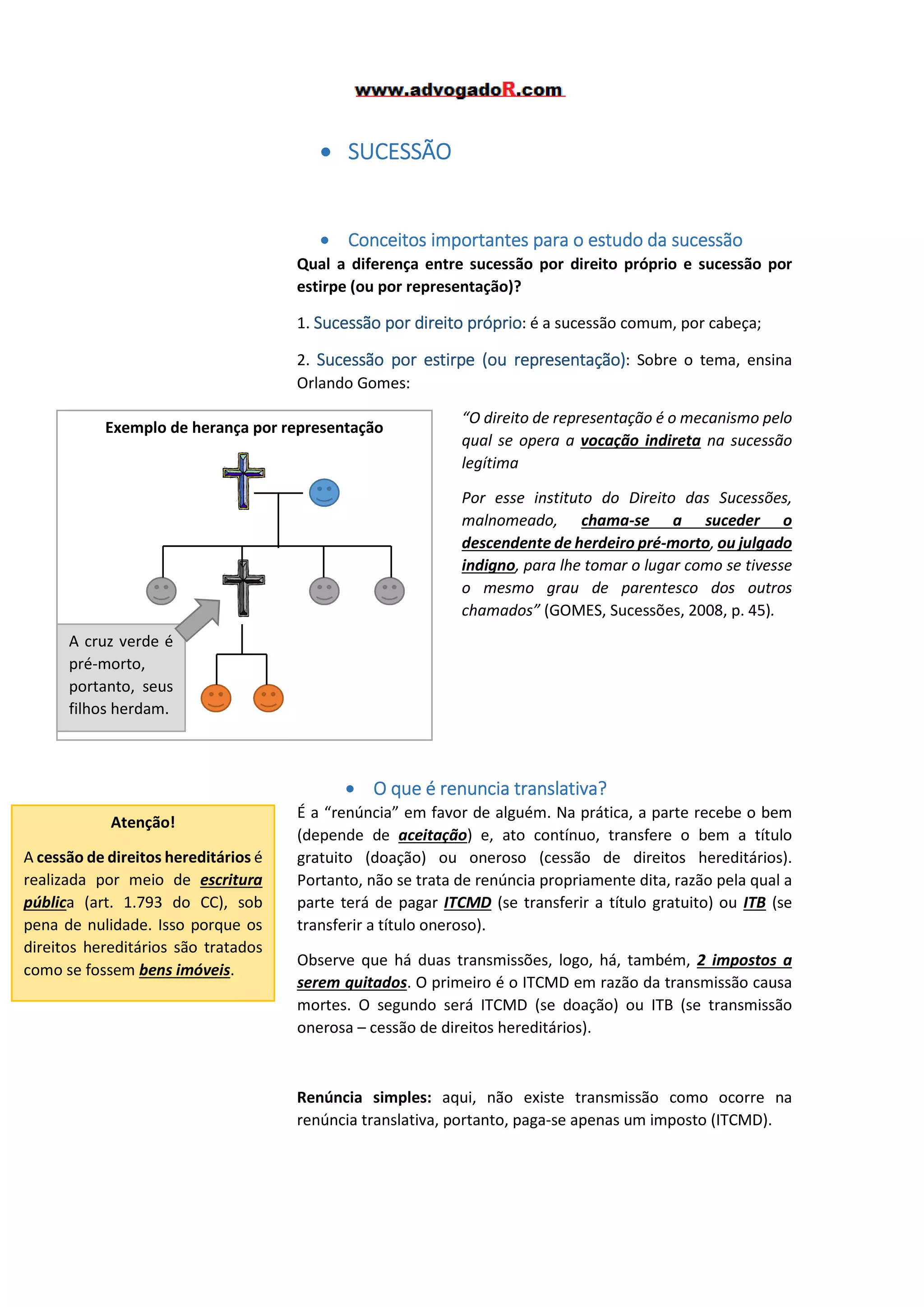 1. A sucessão por direito próprio é a sucessão comum, por cabeça, ao passo que a sucessão por estirpe permite que os descendentes de herdeiros pré-mortos herdem no lugar destes;