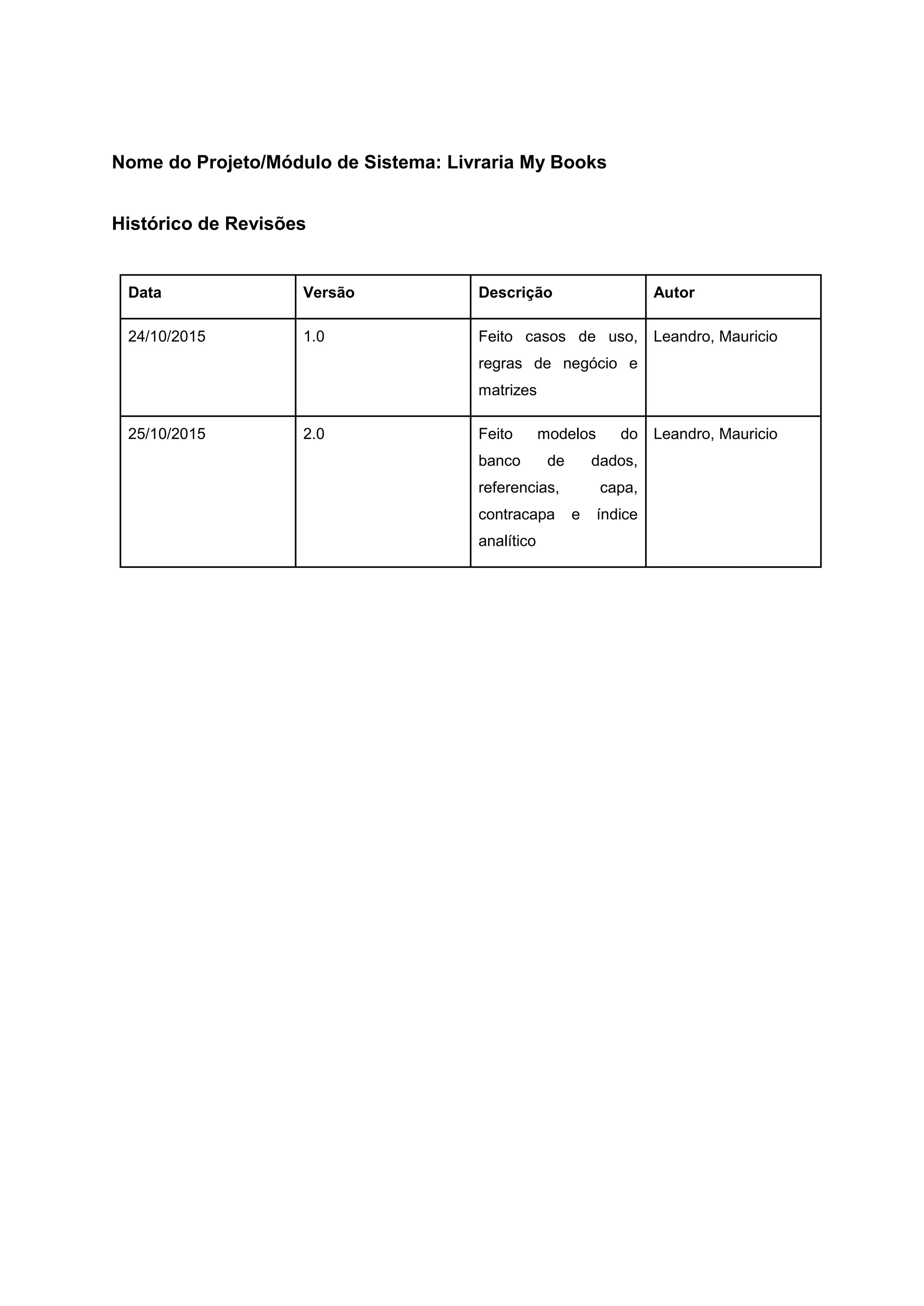 1. O documento especifica os requisitos e casos de uso do sistema My Books, incluindo login, cadastro de livros, movimentações de estoque, consulta de estoque e relatórios.