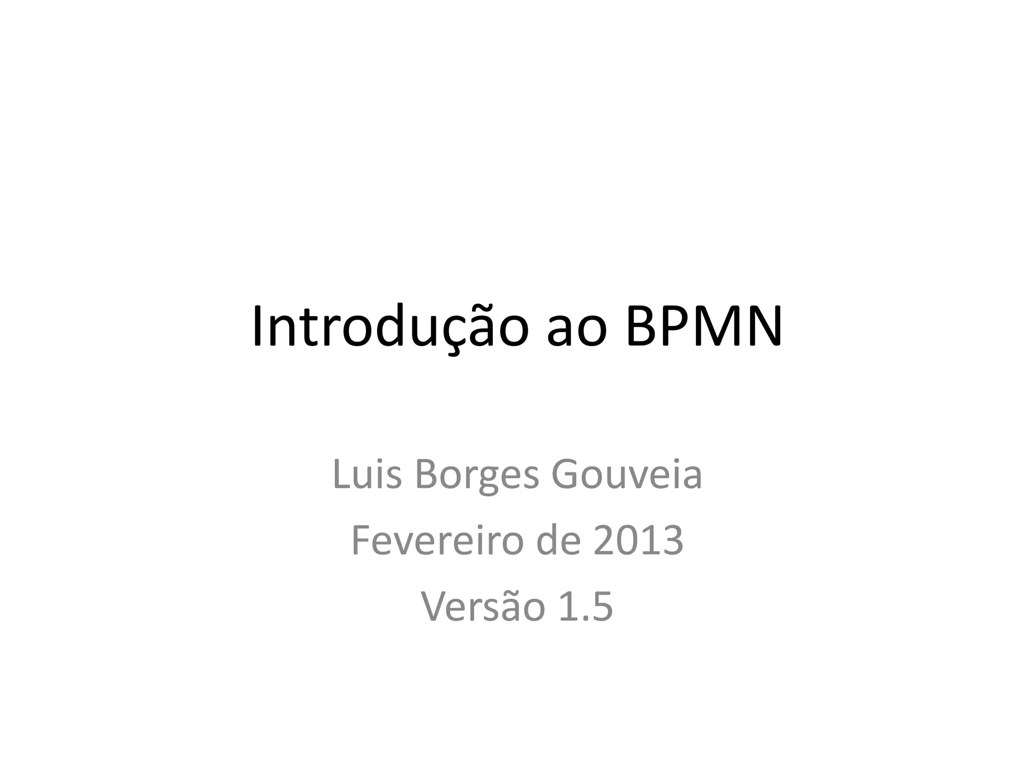 O documento introduz a notação BPMN (Business Process Modeling Notation), descrevendo seus objetivos, elementos e como pode ser usada para modelar processos de negócios de forma gráfica. É apresentado um conjunto básico de elementos como eventos, atividades, gateways e fluxos, e exemplos ilustram como diagramas BPMN podem representar processos administrativos e operacionais.