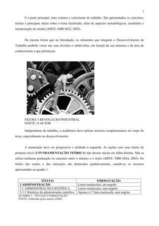 Este documento fornece instruções sobre como elaborar um artigo acadêmico, incluindo como estruturar a introdução, desenvolvimento e considerações finais. A introdução deve definir o tema e objetivos. O desenvolvimento apresenta conceitos e métodos, além de resultados e discussão. Nas considerações finais, reflete-se sobre os achados e suas implicações.