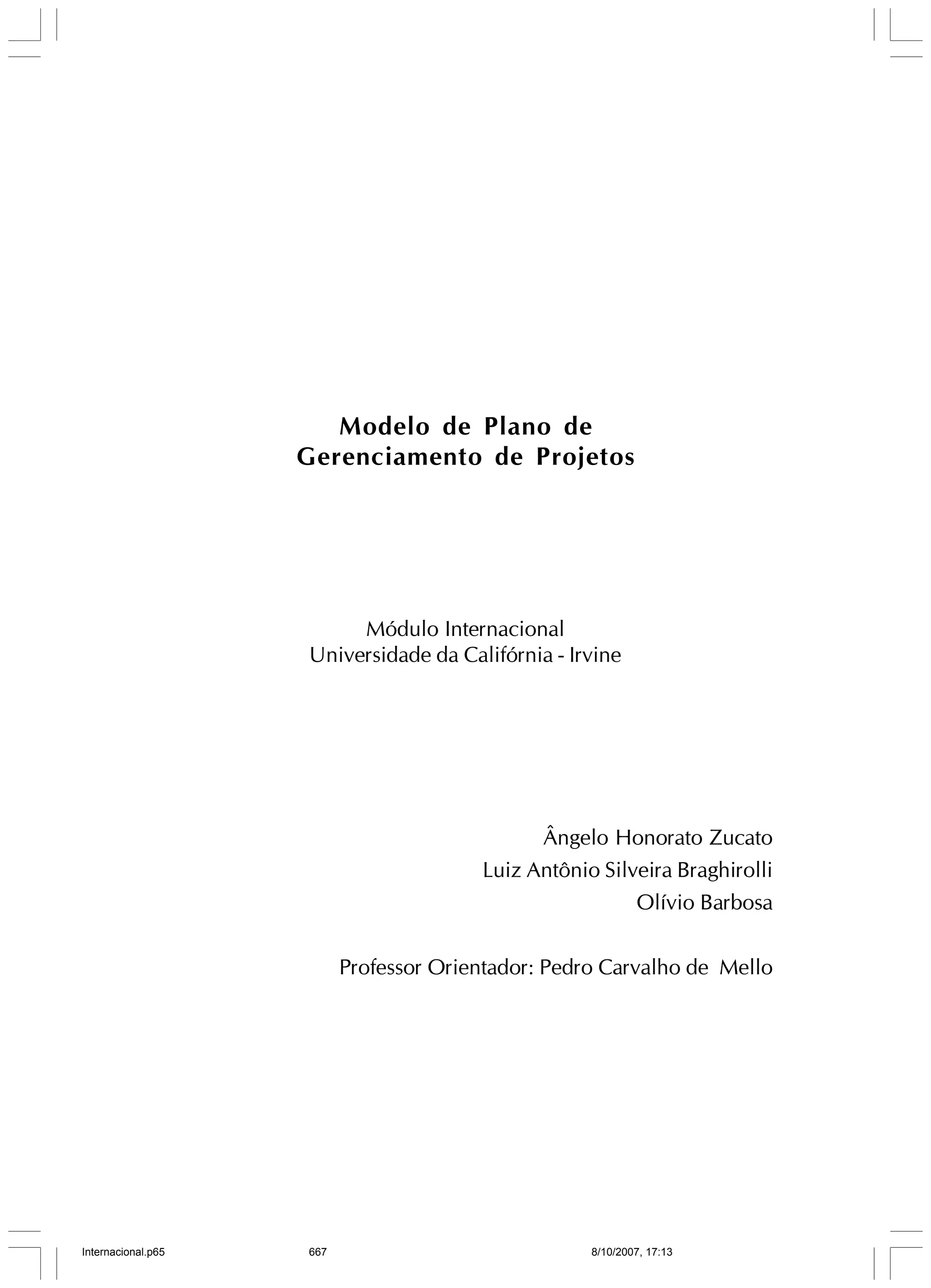 1. O documento apresenta um modelo de Plano de Gerenciamento de Projetos (PGP) para gerenciar projetos de forma padronizada.
