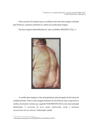 A imagem escolhida retrata a condição humana através dos elementos do estilo barroco como luz e sombra em movimento, representando a fragilidade e sofrimento humanos. A obra sugere que a beleza pode ser encontrada nas formas variadas de percepção que conduzem à reflexão.