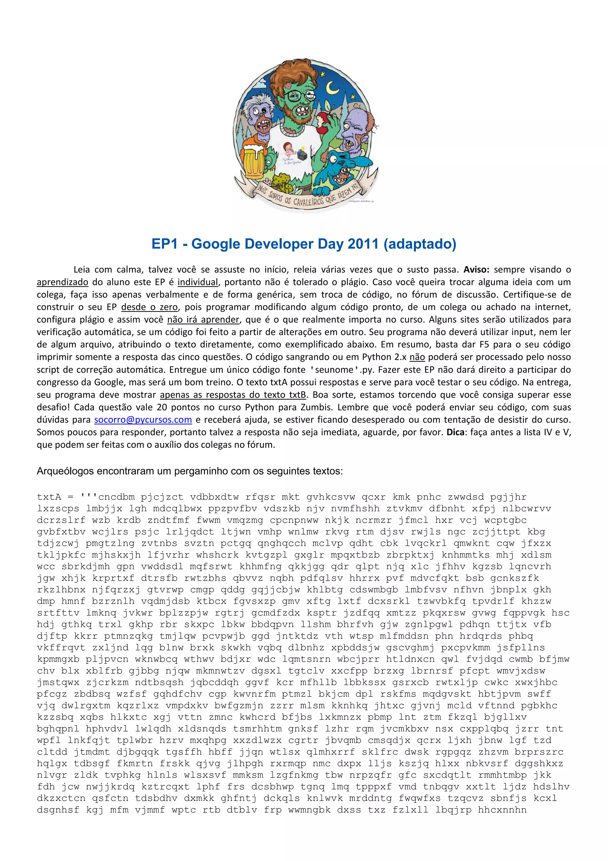 1) O documento fornece instruções para a realização de um exercício programático individual, alertando sobre plágio e pedindo para não copiar códigos de colegas ou da internet.