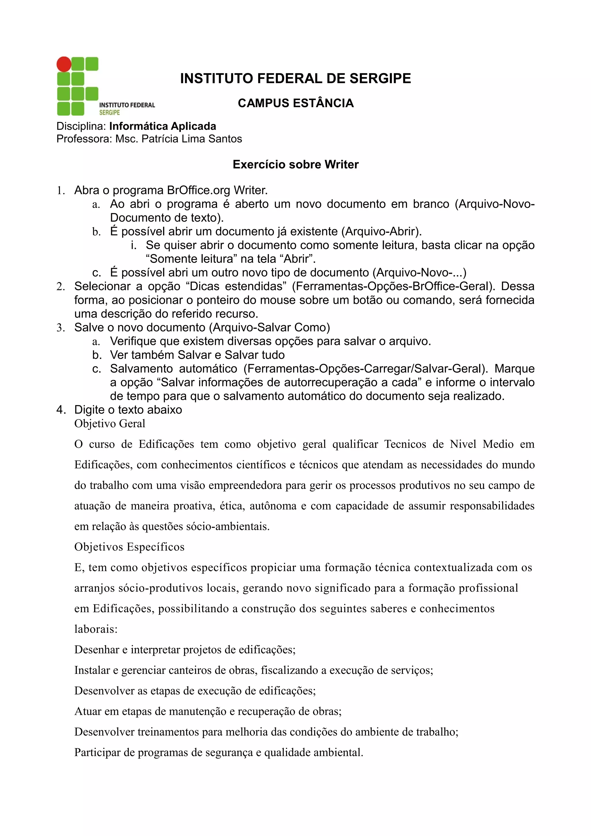 O documento fornece instruções passo-a-passo sobre como utilizar as principais ferramentas do Writer do BrOffice, como formatar texto, inserir objetos, criar tabelas e gráficos, e gerar mala direta a partir de um banco de dados. Inclui também exercícios sobre formatação de página, fontes, parágrafos e marcadores.