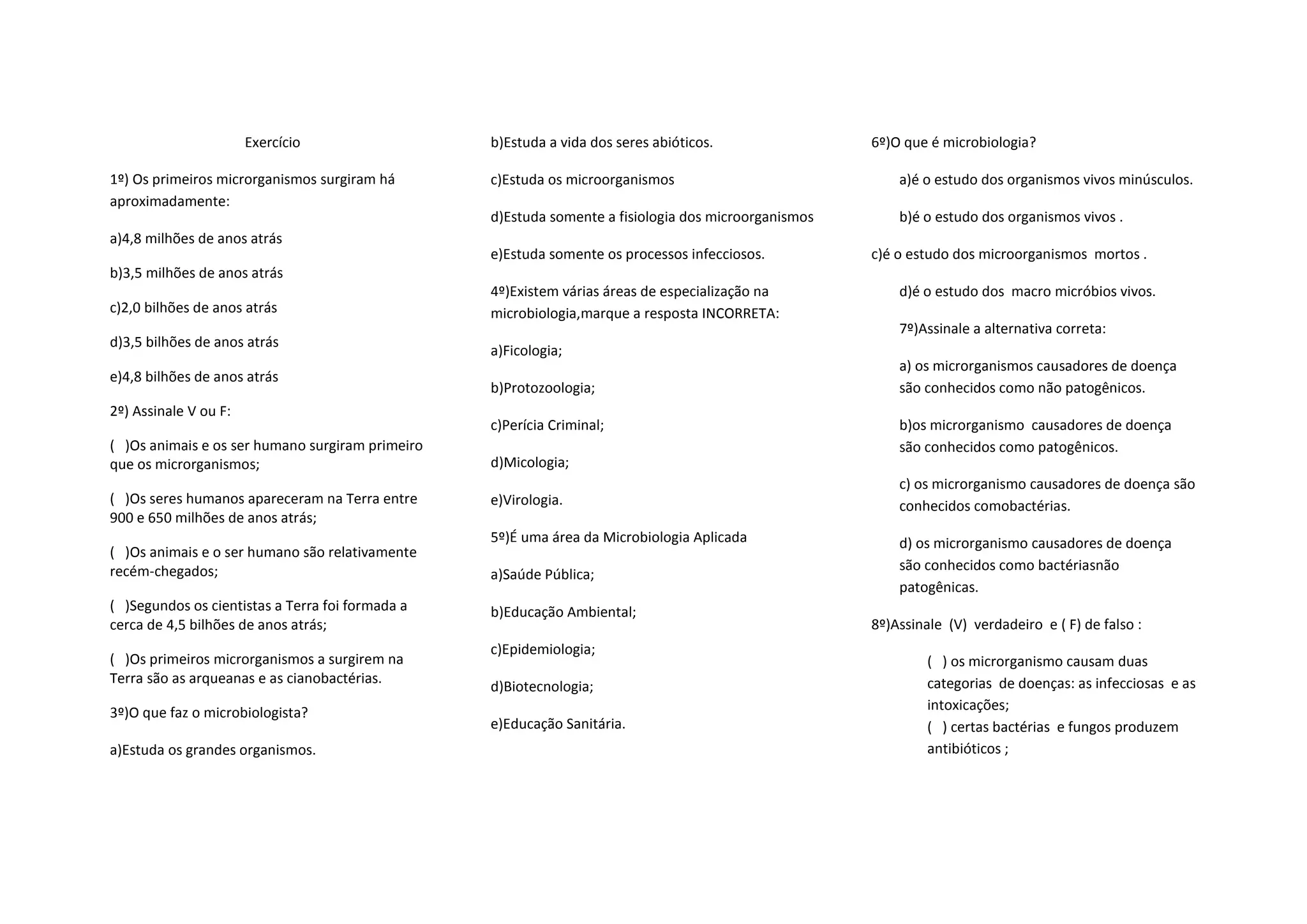 2) Os primeiros microrganismos surgiram há aproximadamente 3,5 bilhões de anos atrás, enquanto os animais e seres humanos são relativamente recentes.