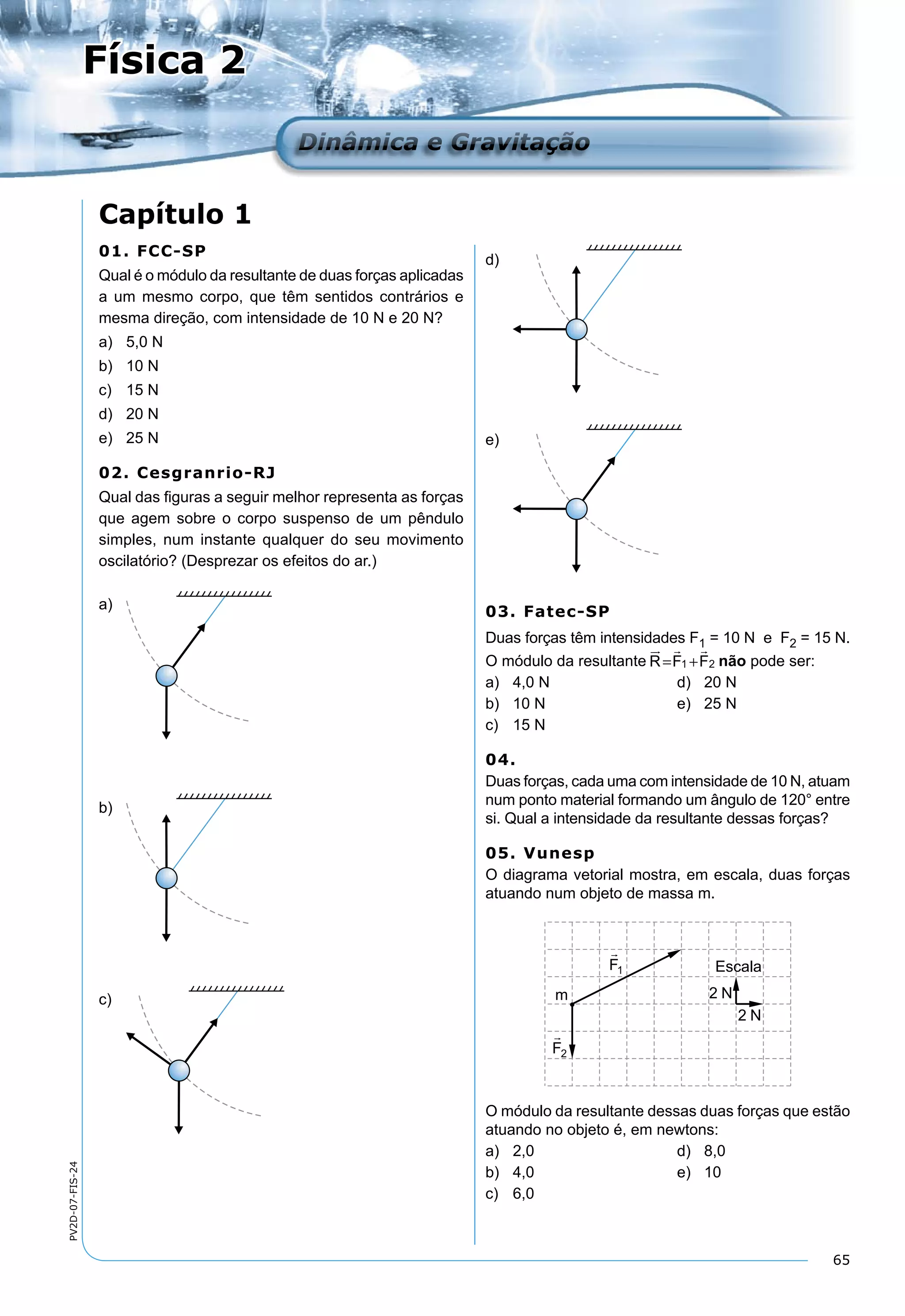 2. As questões abordam conceitos como resultante, tração, forças coplanares, equilíbrio estático e dinâmico.